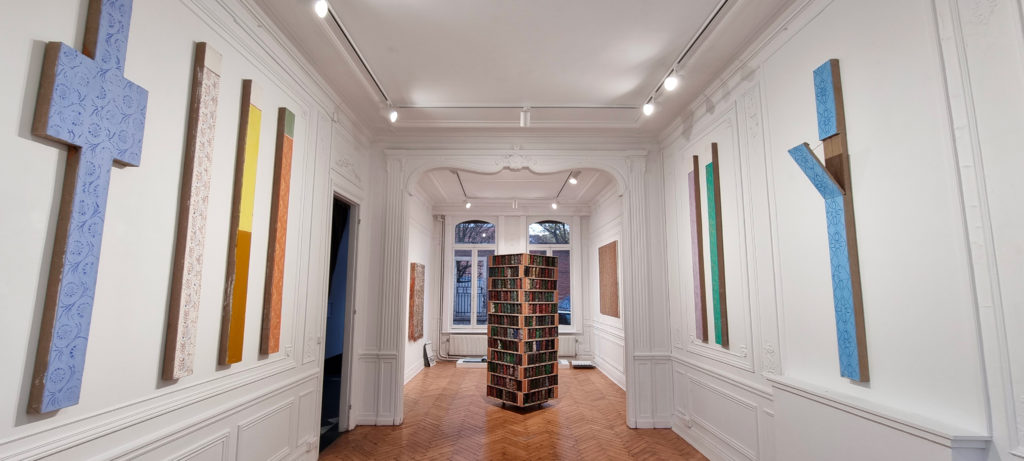 Entre les murs de la Galerie des Ursulines et son atelier tourquennois, c’est tout un univers qui se déploie : mémoire, motifs, traces du temps, motifs décoratifs, répétition, profondeur.