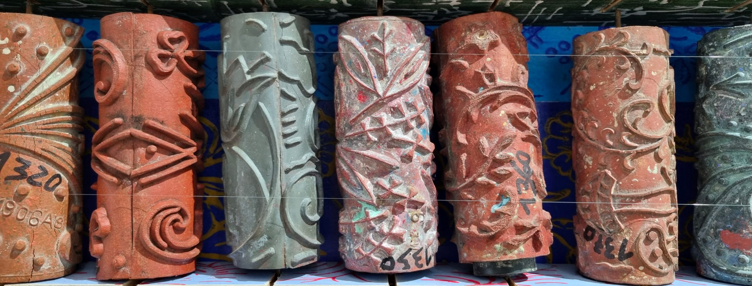 Entre les murs de la Galerie des Ursulines et son atelier tourquennois, c’est tout un univers qui se déploie : mémoire, motifs, traces du temps, motifs décoratifs, répétition, profondeur.